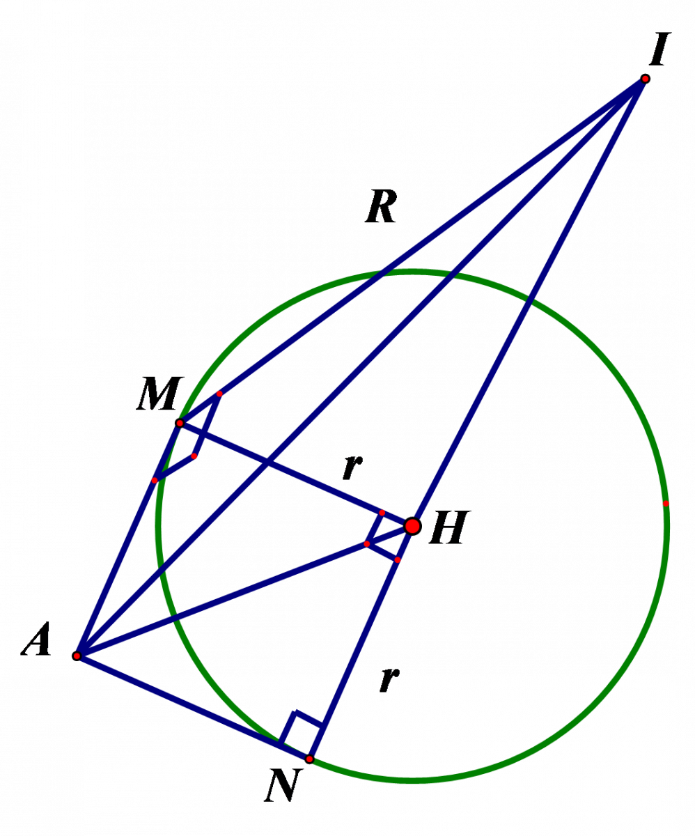 Dễ thấy: \(I{{M}^{2}}+M{{A}^{2}}=A{{I}^{2}}\Rightarrow {{R}^{2}}+{{r}^{2}}=A{{I}^{2}}\).