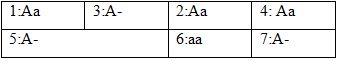 - AAXBXB × aaXbY →F1: AaXBXb : AaXBY ↔ (1AA:2Aa:1aa)(XBXB:XBXb:XBY:XbY)