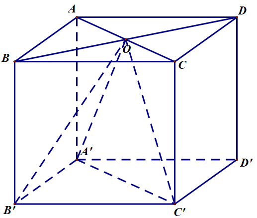 \(\begin{array}{l} {V_{O.A'B'C'}} = \frac{1}{3}d\left( {O,\left( {A'B'C'} \right)} \right).{S_{A'B'C'}}\\ \,\,\,\,\,\,\,\,\,\,\,\,\,\,\,\,\,\,\,\,\,\,\,\,\, = \frac{1}{3}{\rm{AA}}'.\frac{1}{2}AB.AD = 10 \end{array}\)