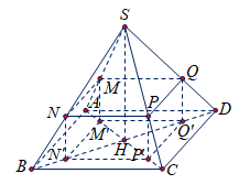 Cho khối chóp S.ABCD có đáy ABCD là hình chữ nhật. Một mặt phẳng thay đổi nhưng luôn song song với đáy và cắt các cạnh bên SA , SB, SC ,SD lần lượt tại M,N ,P ,Q . Gọi M',N' ,Q',P' lần lượt là hình chiếu vuông góc của M,N, P,Q lên mặt phẳng (ABCD) . Tính tỉ số \(% MathType!MTEF!2!1!+- % feaahqart1ev3aqatCvAUfeBSjuyZL2yd9gzLbvyNv2CaerbuLwBLn % hiov2DGi1BTfMBaeXatLxBI9gBaerbd9wDYLwzYbItLDharqqtubsr % 4rNCHbGeaGqiVu0Je9sqqrpepC0xbbL8F4rqqrFfpeea0xe9Lq-Jc9 % vqaqpepm0xbba9pwe9Q8fs0-yqaqpepae9pg0FirpepeKkFr0xfr-x % fr-xb9adbaqaaeGaciGaaiaabeqaamaabaabaaGcbaWaaSaaaeaaca % WGtbGaamytaaqaaiaadofacaWGbbaaaaaa!394C! \frac{{SM}}{{SA}}\) để thể tích khối đa diện MNPQ.M'N'P'Q' đạt giá trị lớn nhất.