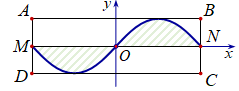 Người ta trồng hoa vào phần đất được tô màu đen được giới hạn bởi cạnh AB,CD , đường trung bình MN của mảnh đất hình chữ nhật ABCD và một đường cong hình sin . Biết \(% MathType!MTEF!2!1!+- % feaahqart1ev3aaatCvAUfeBSjuyZL2yd9gzLbvyNv2CaerbuLwBLn % hiov2DGi1BTfMBaeXatLxBI9gBaerbd9wDYLwzYbItLDharqqtubsr % 4rNCHbGeaGqiVu0Je9sqqrpepC0xbbL8F4rqqrFfpeea0xe9Lq-Jc9 % vqaqpepm0xbba9pwe9Q8fs0-yqaqpepae9pg0FirpepeKkFr0xfr-x % fr-xb9adbaqaaeGaciGaaiaabeqaamaabaabaaGcbaGaamyqaiaadk % eacqGH9aqpcaaIYaGaeqiWda3aaeWaaeaacaWGTbaacaGLOaGaayzk % aaaaaa!3D7A! AB = 2\pi \left( m \right)\),AD = 2(m) . Tính diện tích phần còn lại